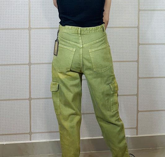 Urban Terrain High-Waist Cargo Jeans – Olive Green